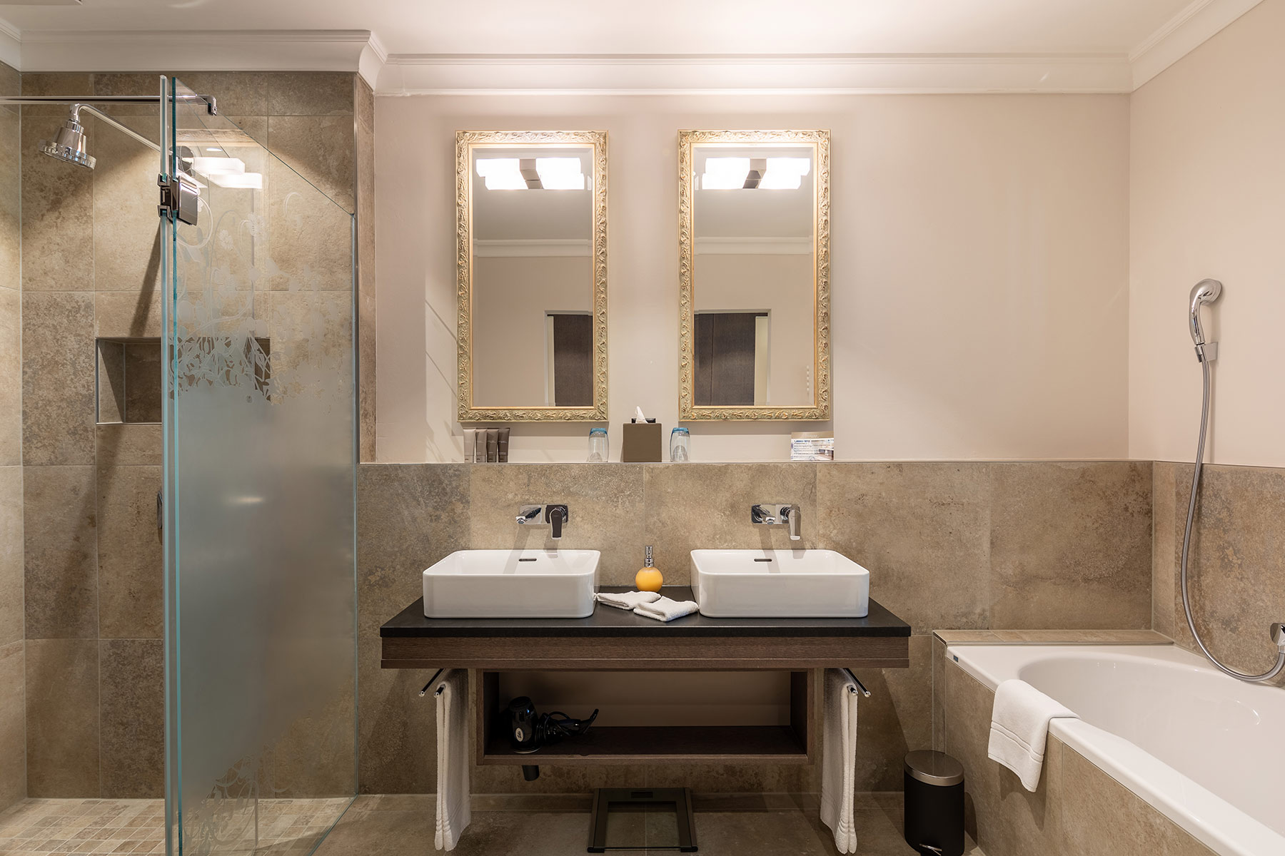 Simply let your soul dangle. In the midst of the green Simmental at the foot of the Wildstrubel lies the spacious SPA & Wellness area “7sources”, newly furnished by Appia, in the 5-star superior Hotel Lenkerhof gourmet spa resort with a panoramic view of the Lenk. Here, a large sauna area, baths, day spa or treatments really invite you to relax. Those who prefer to increase their stamina or reduce stress can also spend time in the modern gym. In combination with earthy brown and beige tones, attention was paid to timeless elegance. Materials such as classic oak combined with natural stone to create a contrast. Color-coordinated, the result is harmony and simple elegance. Not long ago, 28 rooms and suites with bathrooms in the 5 star gourmet spa resort were renovated and renewed all around. Modernly designed ambience with comfortable feel-good zones combined with classic chic – the spacious rooms offer guests a dreamlike panorama of the Swiss mountains in addition to first-class amenities.